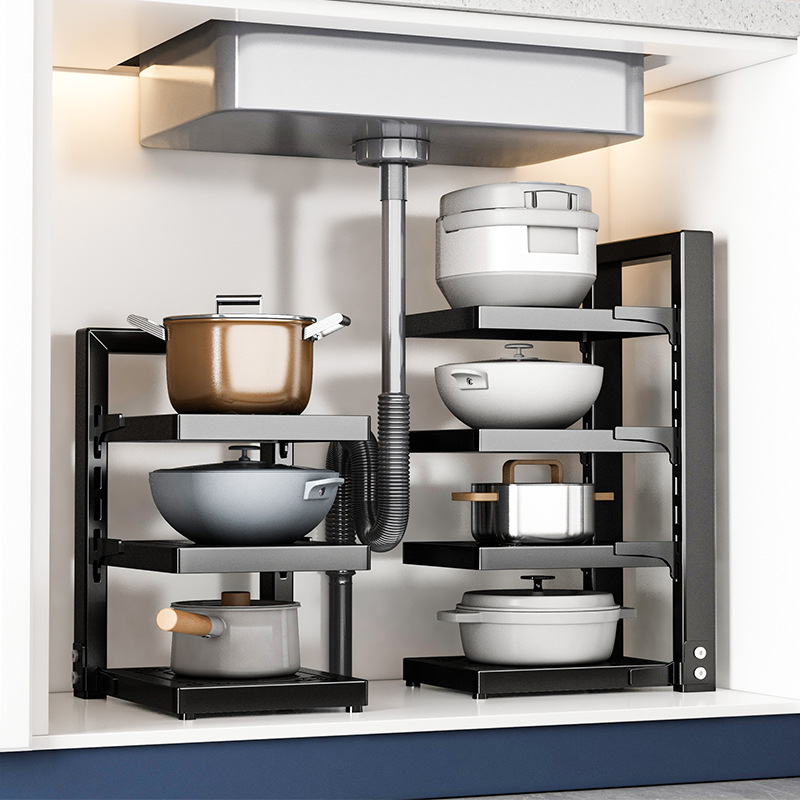Kitchen shelves pot rack new multi-layer adjustable down sink cabinet corner crevice narrow storage shelf